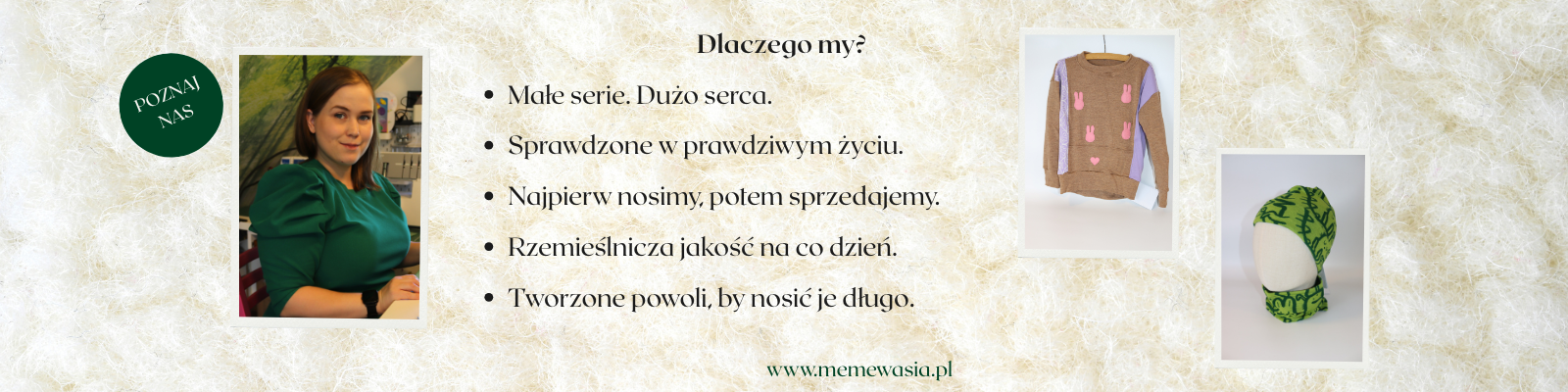 MeME Wasia to mała manufaktura spod Krakowa, w której powstają ubrania i dodatki dla dorosłych oraz dzieci.